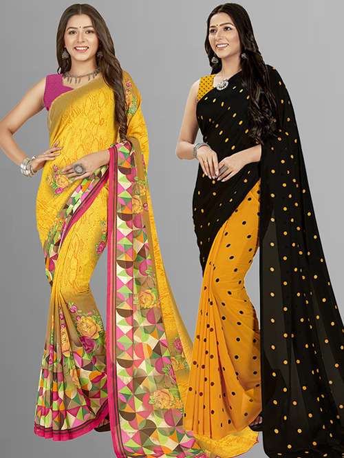 women pack of 2 casual wear combo sarees with blouse - 21429225 - Very Small Image - 1
