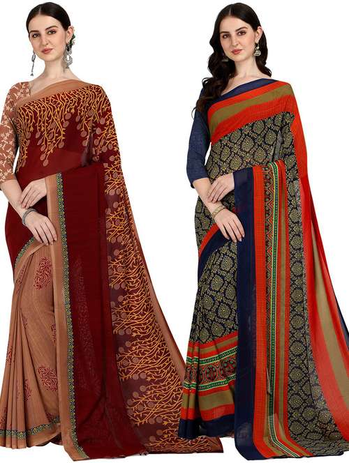 women pack of 2 casual wear combo sarees with blouse - 21429242 - Very Small Image - 1