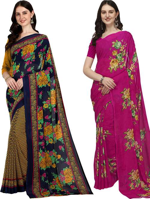 women pack of 2 casual wear combo sarees with blouse - 21429246 - Very Small Image - 1