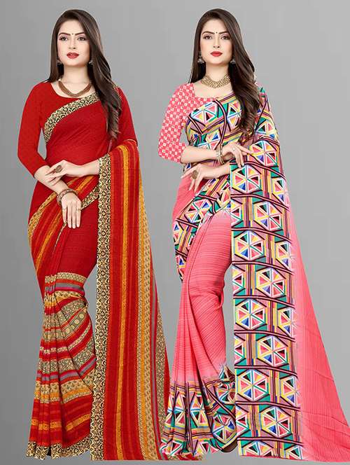 women pack of 2 casual wear combo sarees with blouse - 21429346 - Very Small Image - 1