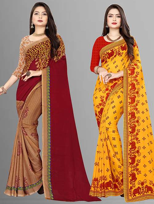 women pack of 2 casual wear combo sarees with blouse - 21429441 - Very Small Image - 1
