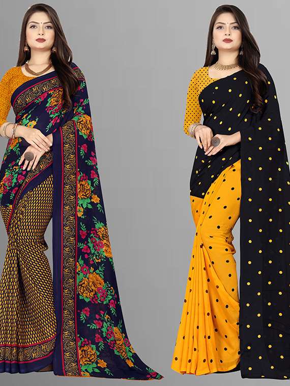 women pack of 2 casual wear sarees with blouse