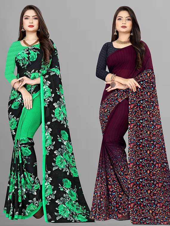 women pack of 2 casual wear combo sarees with blouse - 21429706 - Very Small Image - 1