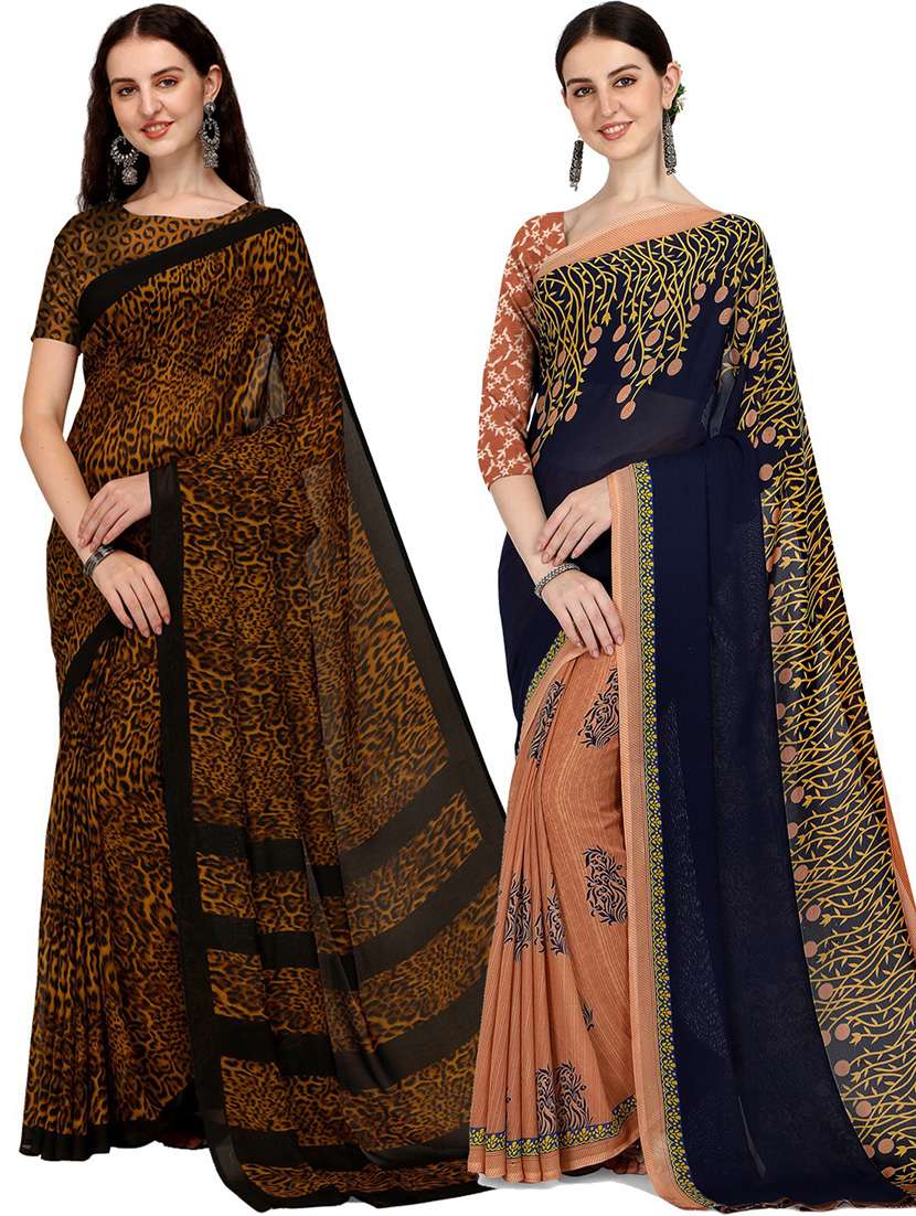 women pack of 2 casual wear combo sarees with blouse
