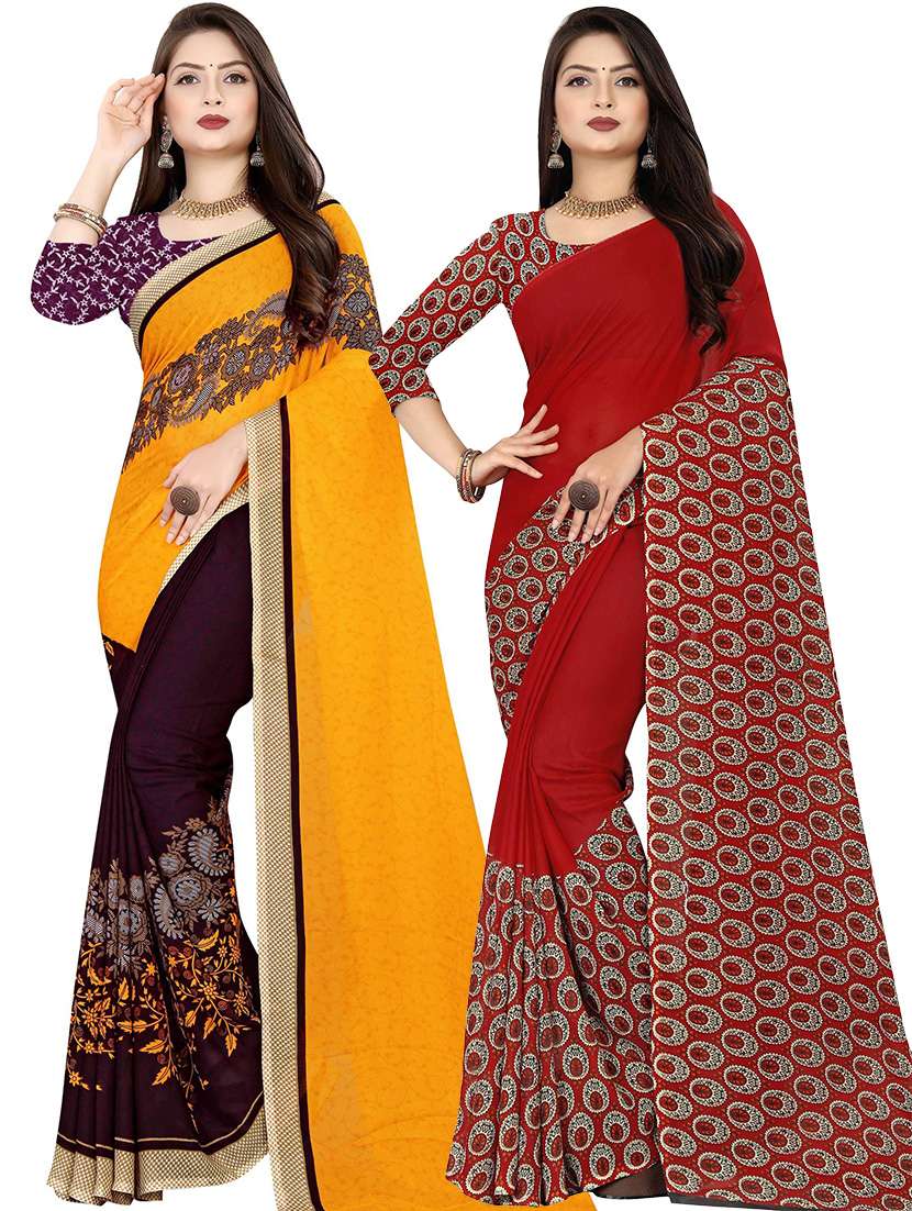 women pack of 2 casual wear combo sarees with blouse