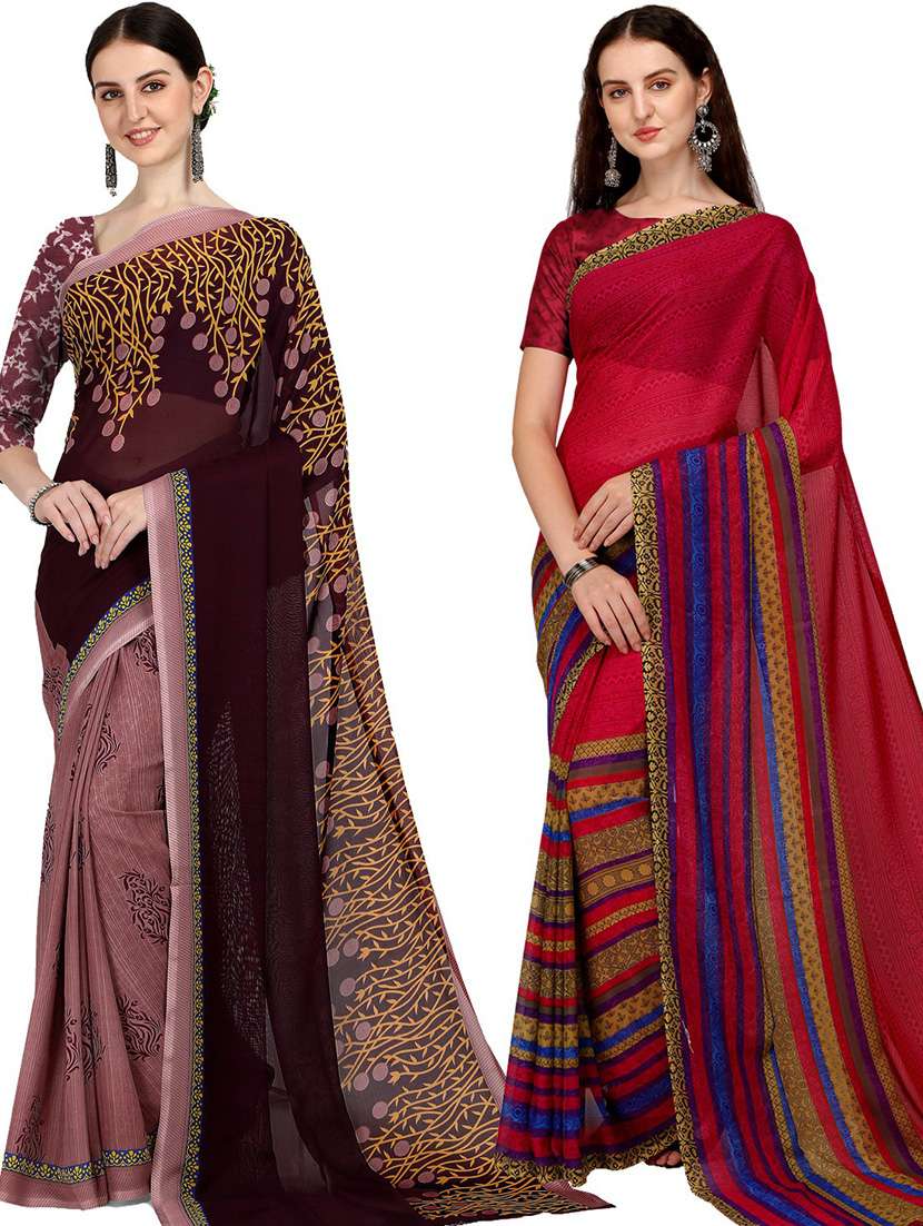 women pack of 2 casual wear combo sarees with blouse