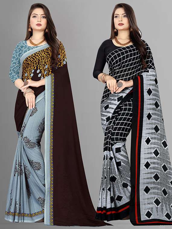 women pack of 2 casual wear combo sarees with blouse