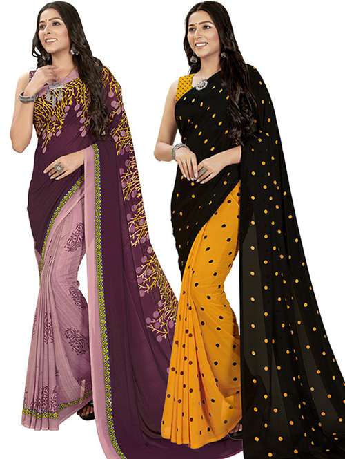 women pack of 2 casual wear combo sarees with blouse