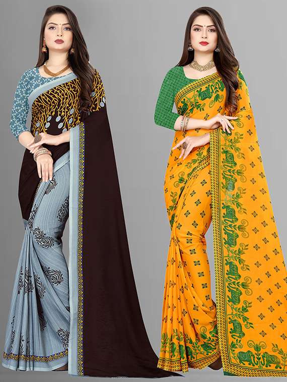 women pack of 2 casual wear combo sarees with blouse - 21429850 - Very Small Image - 1