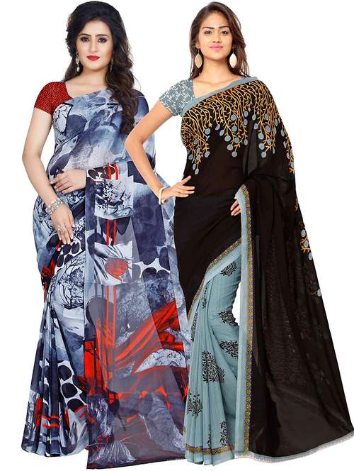 pack of 2 printed casual wear sarees with blouse - 21431423 - Very Small Image - 1