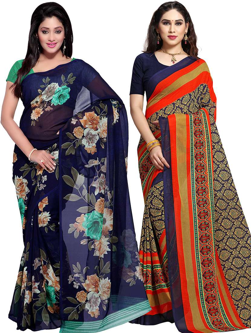 women pack of 2 casual wear sarees with blouse - 21431493 - Very Small Image - 1