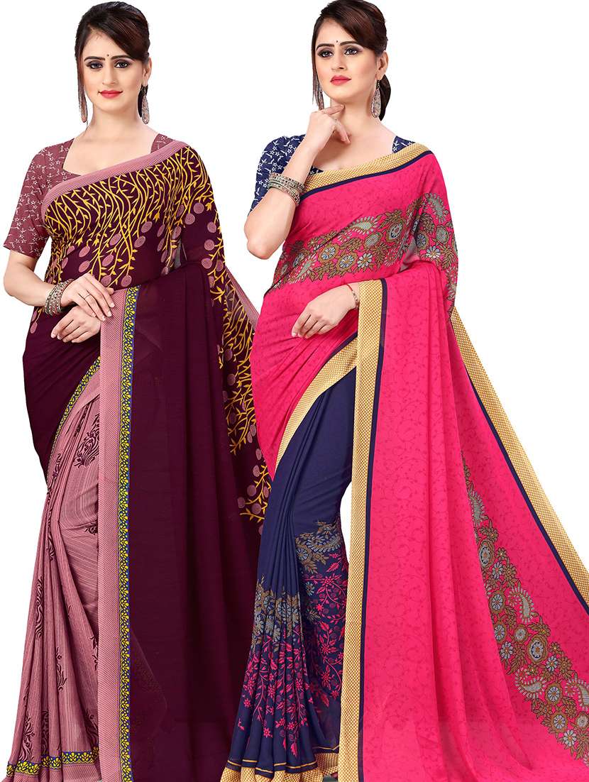 pack of 2 printed casual wear sarees with blouse - 21431502 - Very Small Image - 1