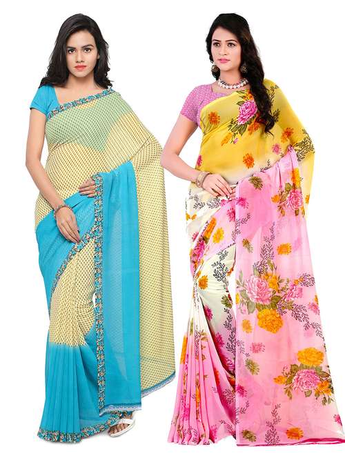 pack of 2 printed casual wear sarees with blouse