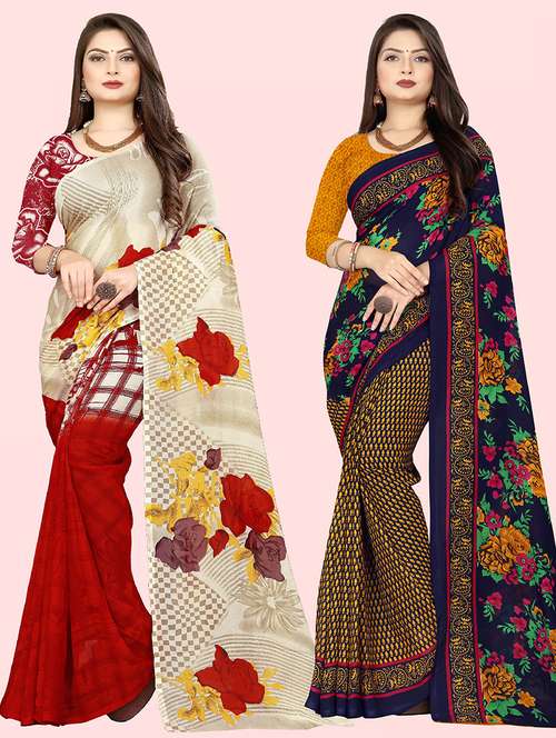 pack of 2 printed casual wear sarees with blouse - 21431533 - Very Small Image - 1