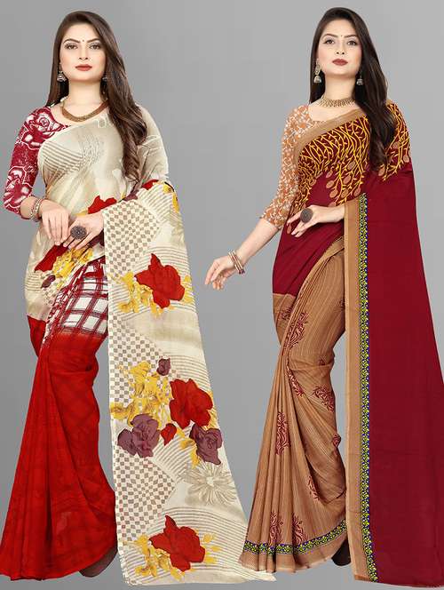 women combo pack of 2 printed saree with blouse
