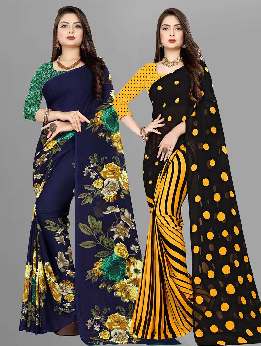 pack of 2 printed casual wear sarees with blouse - 21431666 - Very Small Image - 1