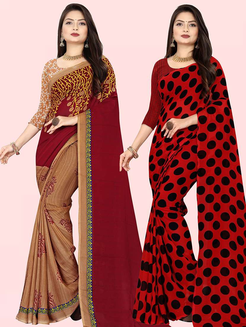 pack of 2 printed casual wear sarees with blouse - 21431758 - Very Small Image - 1