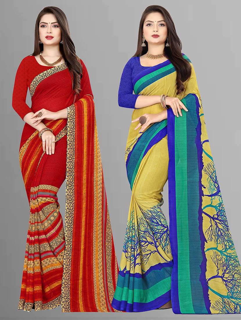 pack of 2 printed casual wear sarees with blouse