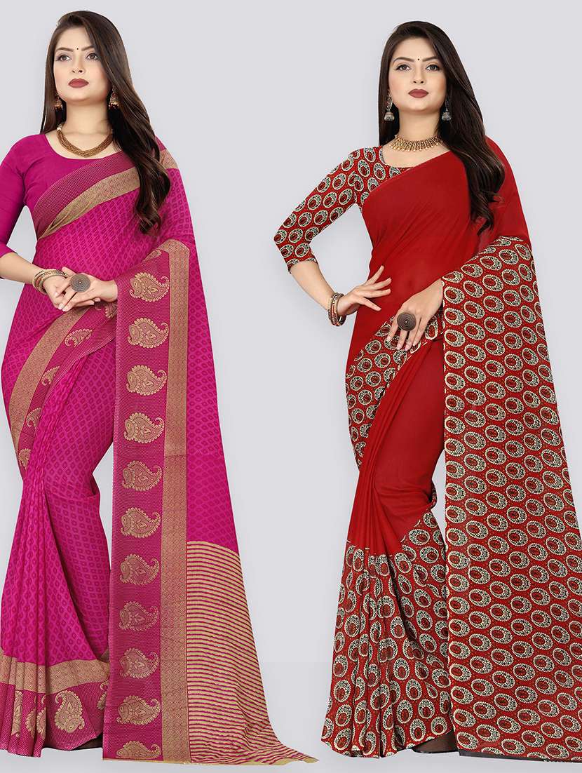 pack of 2 printed casual wear sarees with blouse - 21431791 - Very Small Image - 1