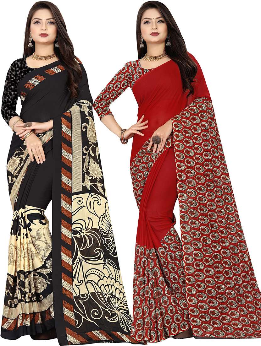 pack of 2 printed casual wear sarees with blouse - 21431840 - Very Small Image - 1