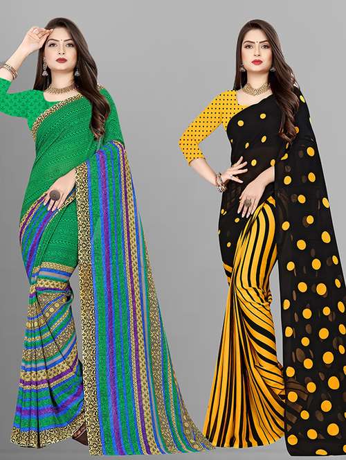 pack of 2 casual wear combo sarees with blouse - 21431875 - Very Small Image - 1