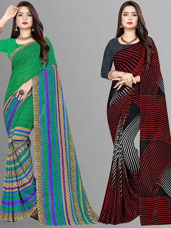 women multi color printed combo saree with blouse - 21431892 - Very Small Image - 1