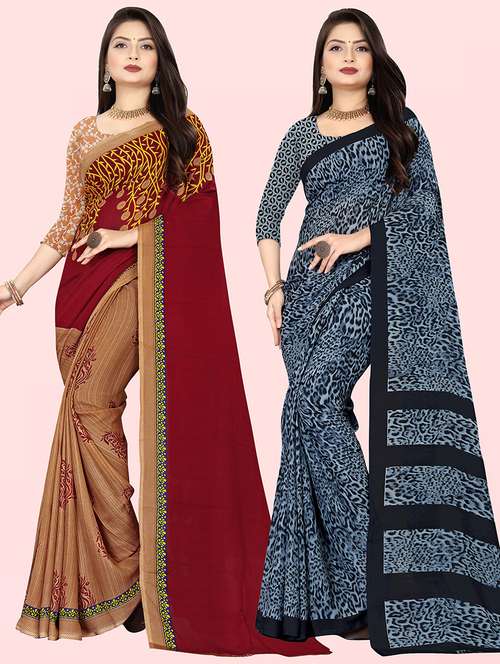 pack of 2 casual wear combo sarees with blouse - 21431939 - Very Small Image - 1