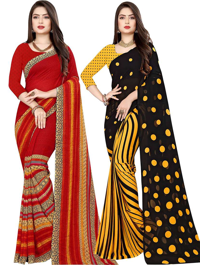 women multi color printed combo saree with blouse - 21431955 - Very Small Image - 1