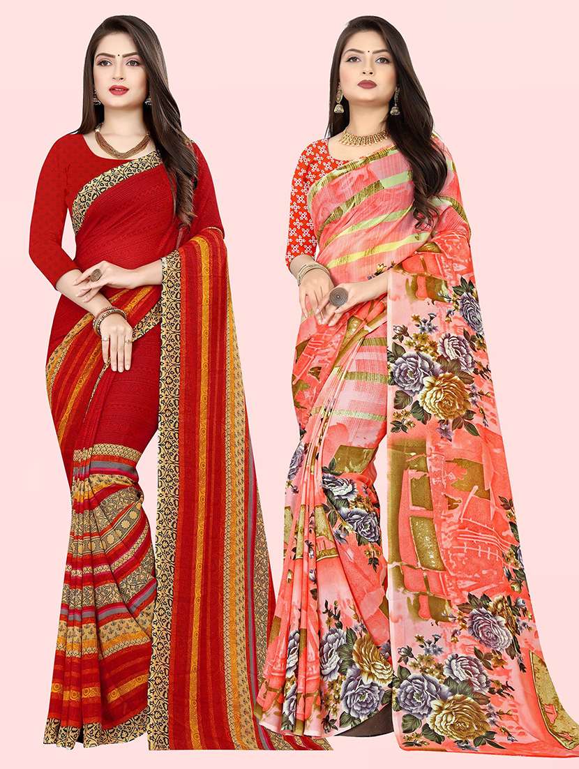 women pack of 2 casual wear sarees with blouse