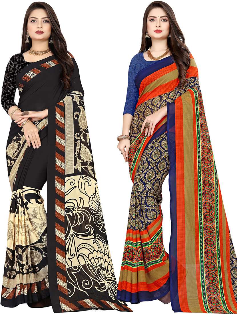 pack of 2 printed casual wear sarees with blouse - 21432014 - Very Small Image - 1