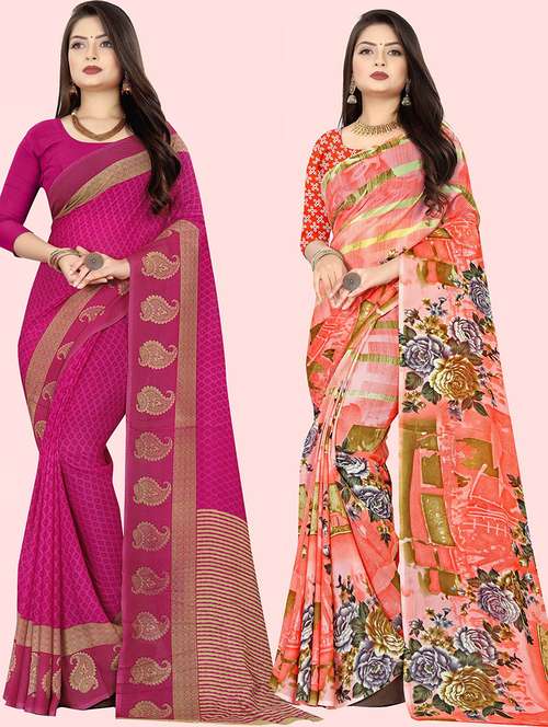 women pack of 2 casual wear sarees with blouse