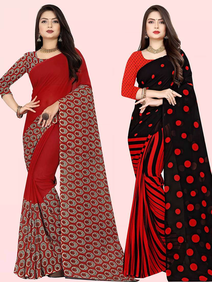 women pack of 2 casual wear sarees with blouse
