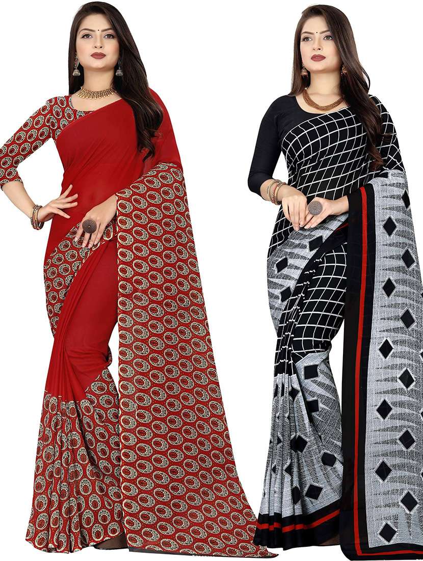 pack of 2 printed casual wear sarees with blouse - 21432139 - Very Small Image - 1