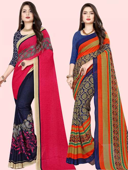 pack of 2 printed casual wear sarees with blouse
