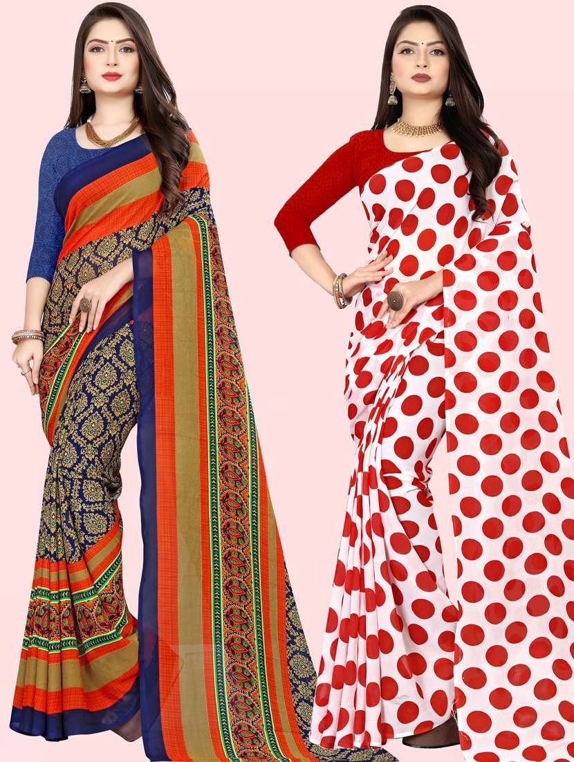 women multi color printed combo saree with blouse - 21432231 - Very Small Image - 1