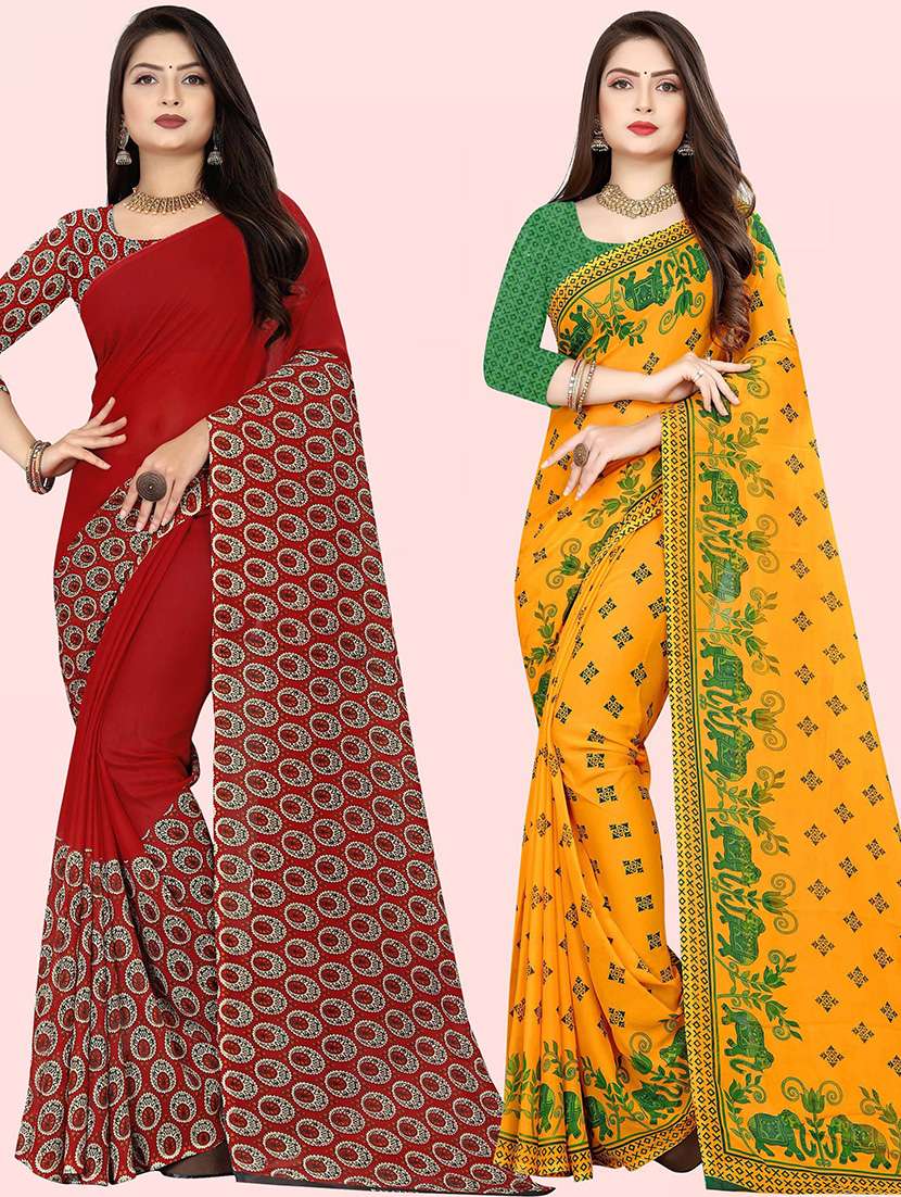 pack of 2 casual wear combo sarees with blouse