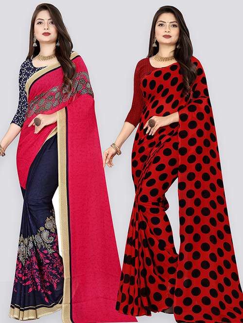 pack of 2 printed casual wear sarees with blouse - 21432290 - Very Small Image - 1