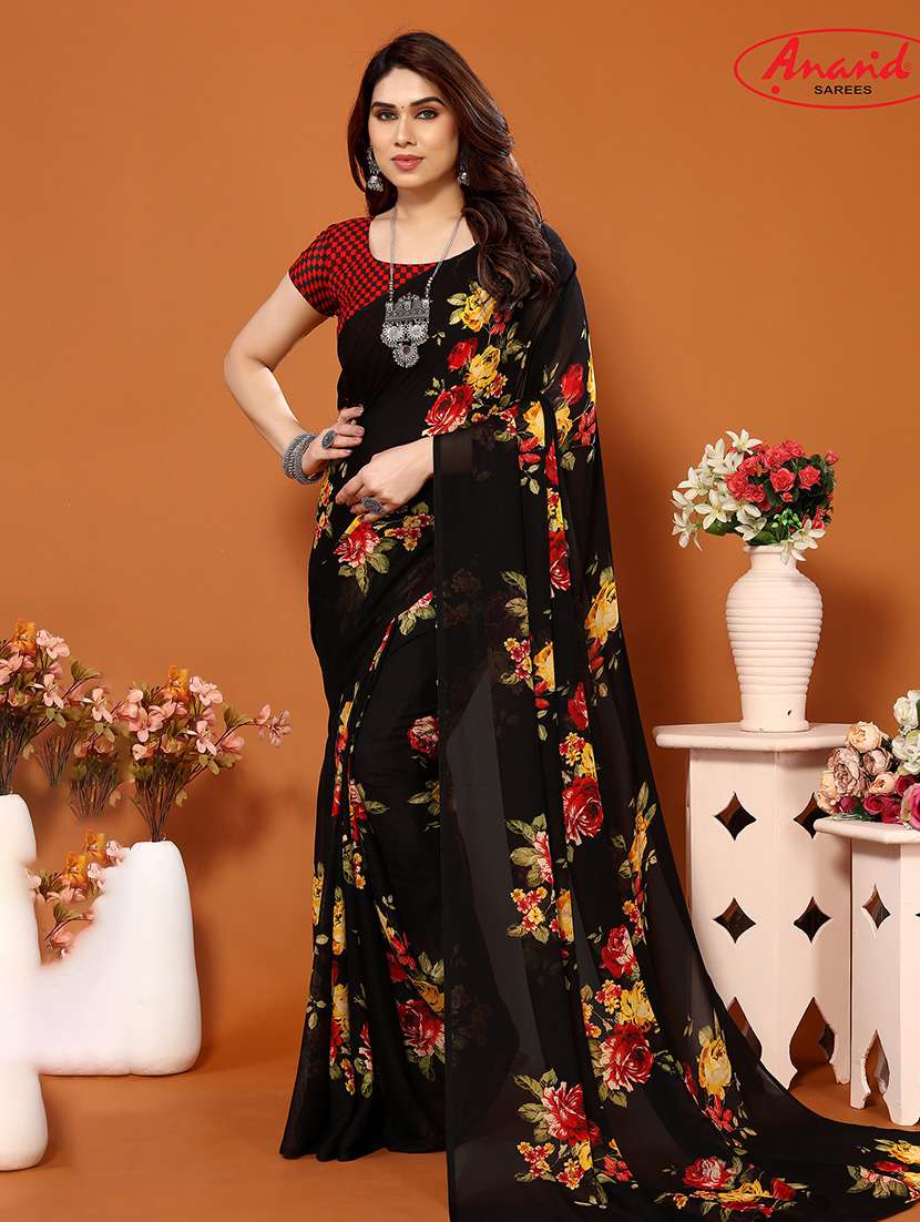- » women black floral printed saree with blouse