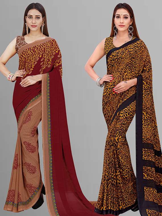 pack of 2 printed casual wear sarees with blouse - 21432755 - Very Small Image - 1