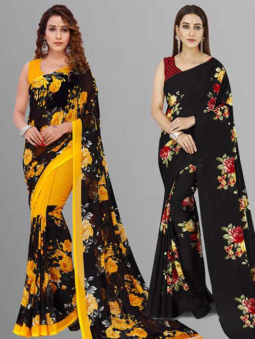 pack of 2 printed casual wear sarees with blouse