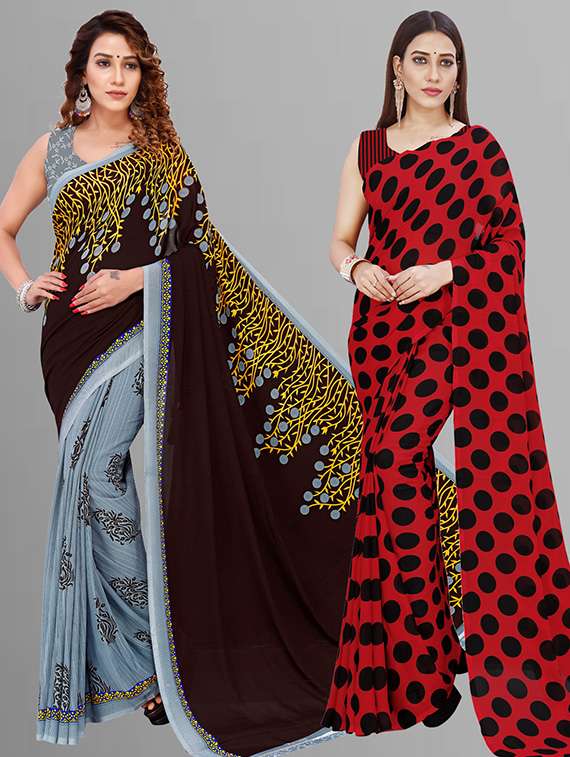 pack of 2 casual wear combo sarees with blouse - 21432775 - Very Small Image - 1