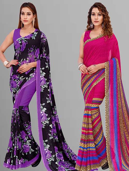 pack of 2 printed casual wear sarees with blouse - 21432790 - Very Small Image - 1