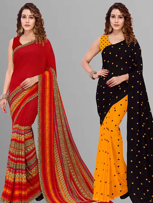 pack of 2 printed casual wear sarees with blouse - 21432822 - Very Small Image - 1