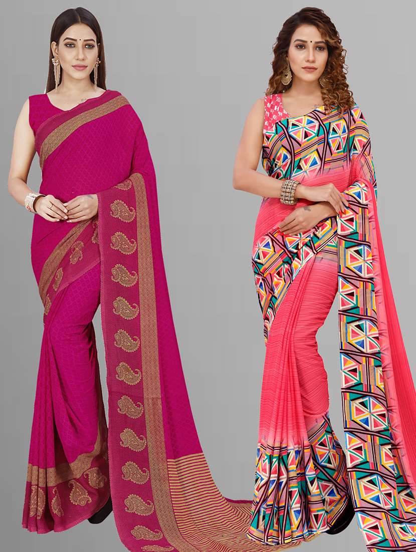 pack of 2 printed sarees with blouse