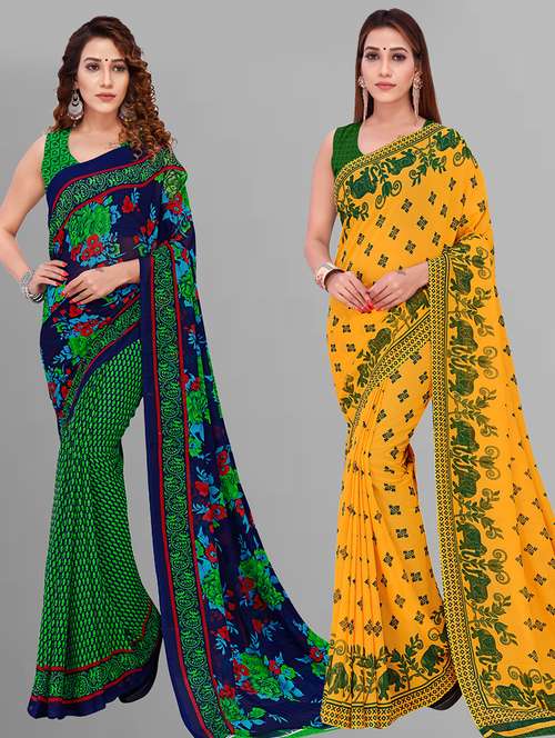 pack of 2 printed casual wear sarees with blouse - 21432854 - Very Small Image - 1