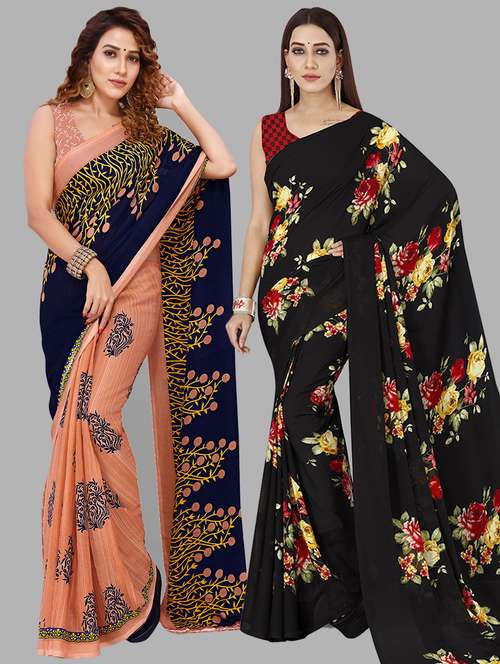 pack of 2 printed casual wear sarees with blouse