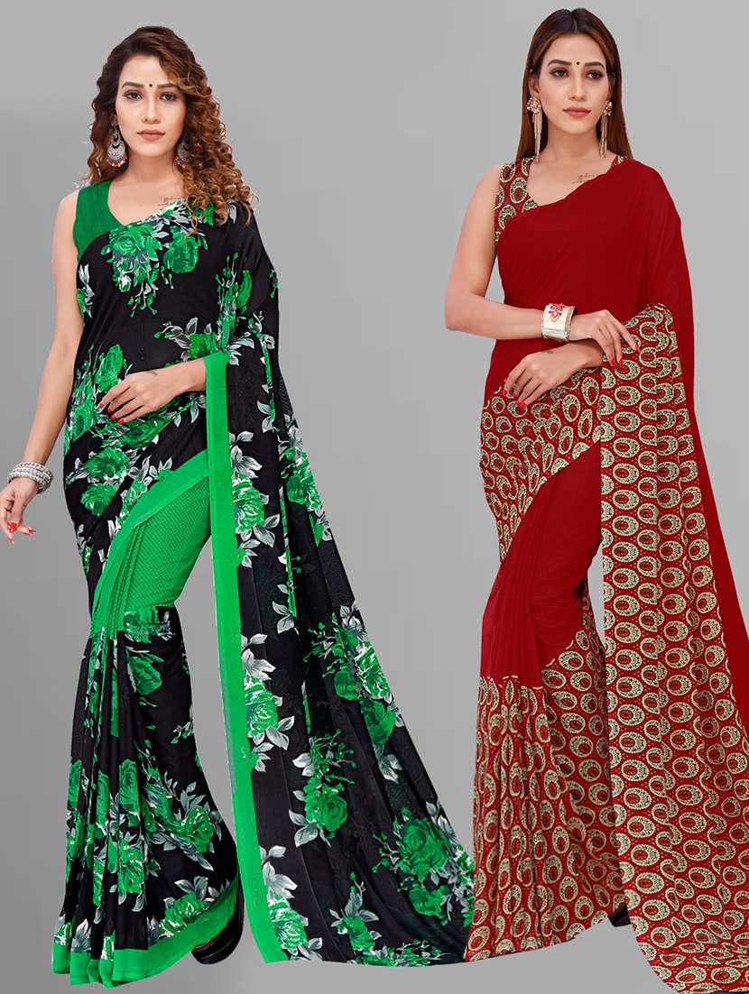 pack of 2 printed casual wear sarees with blouse - 21432867 - Very Small Image - 1