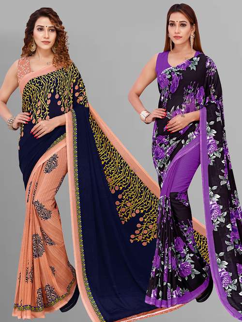 pack of 2 printed casual wear saree with blouse