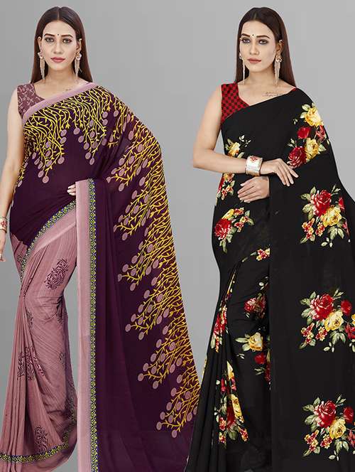 women pack of 2 casual wear combo saree with blouse