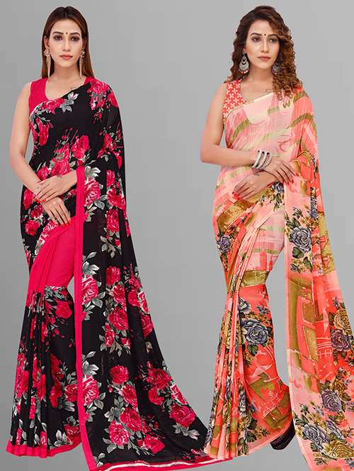 women pack of 2 casual wear combo saree with blouse - 21432918 - Very Small Image - 1